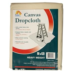 The Canvas Essentials 9-by-12-foot canvas drop cloth is developed to deal with any paint or heavy duty property improvement project. Produced from eight-ounce 100-percent cotton duck canvas fabric, this cloth protects floors, carpets, furniture or equipment. It also absorbs paint spills, traps dust, and debris for quicker clean-up. With double-stitched seams and heavy-duty rot-resistant thread, this canvas drop cloth is washable and reusable.9-by-12-inch canvas drop cloth handles any paint or Heavy-duty dwelling improvement projectProtects floors, carpets, furniture or equipment absorbs paint spills, traps dust, and debris for faster cleanupMade from 8-ounce 100% cotton duck canvas fabricDouble-stitched seams heavy-duty rot-resistant threadWashable and reusable